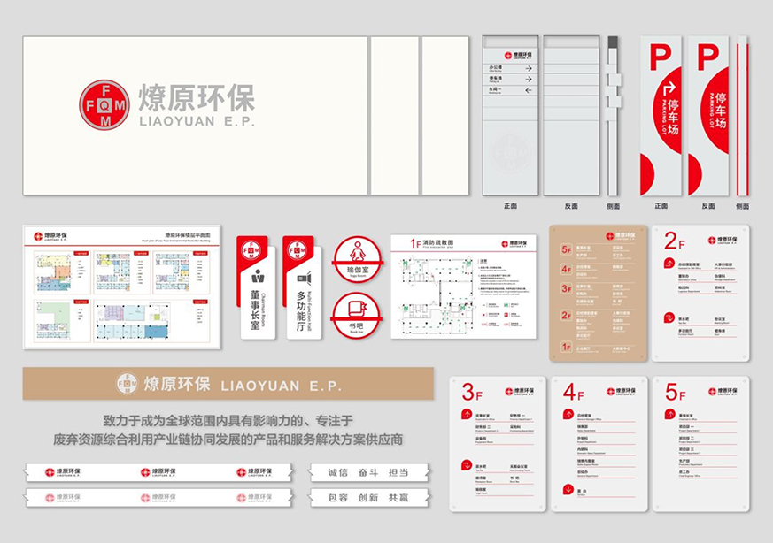 企业的物理空间,是品牌理念最直观的体验场。我们为燎原环保打造了一套由外而内、功能与美观并重的环境导视系统。